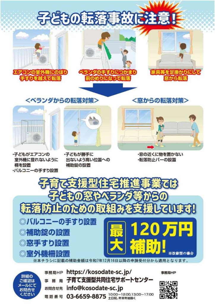 転落防止設備の設置した家庭に補助金を交付しています。